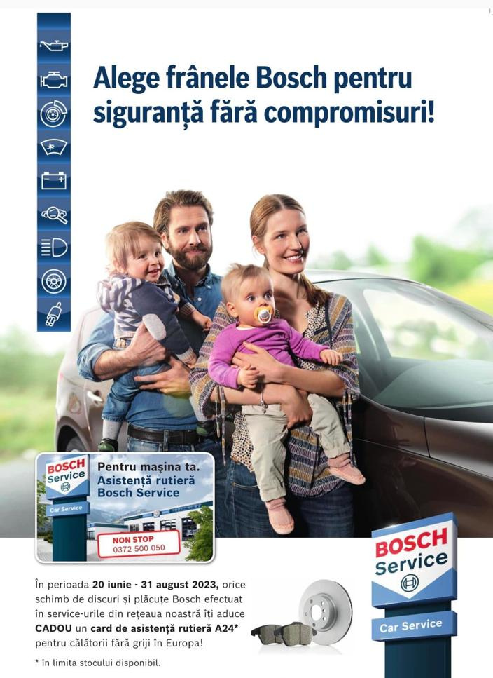 În perioada 20 iunie – 31 august 2023, orice schimb de discuri și plăcuțe Bosch efectuat la Bosch Car Service Sibiu, îți aduce CADOU un card de asistență rutieră A24* pentru călătorii fără griji in Europa!